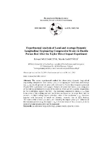 The recent experimental method for determining dynamic longitudinal engineering compressive local strain, εl (x), (x is Lagrangian coordinate) and average one, εa, in a ductile porous rod, plastically deformed by Taylor direct impact experiment (Taylor DIE) is presented in this paper. Analysis of strain distribution, εl (x), along axis of the rod was performed by means of this method. There are two essential singularities in this distribution, namely: the first – the maximum compressive strain, εl max, there is in a near of the striking end rod, but it does not locate on the target face; and the second – at high loading (impact velocity), value of the maximum, εl max, decreases together with increasing of initial rod porosity, inversely than at static loading. The values of the strains εl (x) and εa are limited by the impact velocity U. Influence of the moderate porosity (e.g. for copper – Δsa < 20%) on values of the εl (x) and εa is in the order of several percent and it may be neglected.