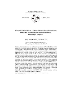 Tytuł: Numerical Simulations of Penetration of 9 mm Parabellum Bullet into Kevlar Layers – Erosion Selection in Autodyn Program ; Numerical Simulations of Penetration of 9 mm Parabellum Bullet into Kevlar Layers – Erosion Selection in Autodyn Program