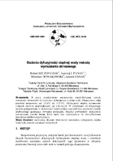 W pracy przedstawiono zastosowanie zmodyfikowanej metody wymuszeń okresowych do określenia dyfuzyjności cieplnej wody. Eksperyment objął przedział temperatury od -13,6 st.C do +12,0 st.C. Dyfuzyjność cieplną wyznaczono z danych zarówno amplitudowych, jak i fazowych. W odróżnieniu od klasycznego sposobu postępowania, w obliczeniach wykorzystano nieprzybliżone zależności modelu analitycznego generujące równania przestępne. Badania potwierdziły skuteczność zastosowanej metody badań, która może być wykorzystana do zweryfikowania dotychczas publikowanych danych.