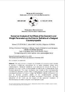 Analiza numeryczna wpływu parametrów geometryczno -masowych projektowanego antypocisku na jegobalistykę zewnętrzną ; Analiza numeryczna wpływu parametrów geometryczno -masowych projektowanego antypocisku na jegobalistykę zewnętrzną