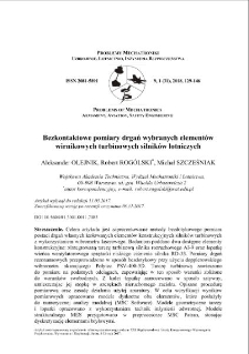 Celem artykułu jest zaprezentowanie metody bezdotykowego pomiaru postaci drgań własnych izolowanych elementów konstrukcyjnych silników turbinowych z wykorzystaniem wibrometru laserowego. Badaniom poddano dwa dostępne elementy konstrukcyjne: zintegrowaną tarczę turbinową silnika rozruchowego AI-9 oraz łopatkę wieńca wentylatorowego sprężarki niskiego ciśnienia silnika RD-33. Pomiary drgań rezonansowych przeprowadzono w sposób bezdotykowy przy użyciu dopplerowskiego wibrometru skanującego Polytec PSV-400-3D. Tarczę turbinową zawieszono do pomiaru na podatnych odciągach, zapewniając w ten sposób warunki zbliżone do warunków swobodnych. Z kolei łopatkę zamocowano w sposób sztywny, umieszczając jej stopkę w szczękach nieruchomego zacisku. Opisano procedurę pomiarową oraz zasadę działania użytej aparatury. W celu weryfikacji wyników pomiarowych opracowano modele dyskretne obu elementów, które posłużyły do numerycznej analizy modalnej (MSC Software). Modele geometryczne tarczy i łopatki opracowano z wykorzystaniem technik inżynierii odwrotnej. Modele strukturalnego MES przygotowano w preprocesorze MSC Patran, stosując dyskretyzację elementami bryłowymi. Częstotliwości podstawowych postaci rezonansowych zbadanych doświadczalnie porównano z częstotliwościami analogicznych postaci numerycznych. Analiza porównawcza jest punktem wyjścia do kalibracji modeli numerycznych, które w kolejnym etapie badań będzie można wykorzystać do określania krytycznych prędkości obrotowych wirujących elementów.