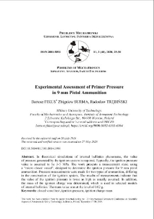 Eksperymentalna ocena wartości ciśnienia zapłonu 9 mm amunicji pistoletowej