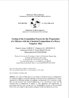 Badanie procesu przygotowywania mieszanki o składzie chemicznym wolframowego stopu ciężkiego metodą granulacji