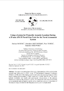 | Using a System for Projectile Acoustic Location Duringa 35 mm AM-35 Naval Gun Tests for the Naval Armament System | 13 paź 2025 |