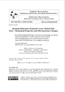 | Dynamic Behaviour of Selective Laser Melted 316L Steel – Mechanical Properties and Microstructure Changes | Oct 15, 2025 |